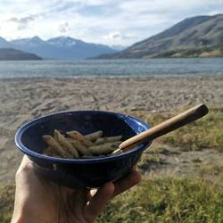 Im Park übernachten wir das erste Mal auf einem Campingplatz. Sehr schön gelegen am See mit atemberaubenden Panorama.... direkt auf die Berge der Torres. Es ist Silvester. Wir bekommen hier nichtsLeggi altro