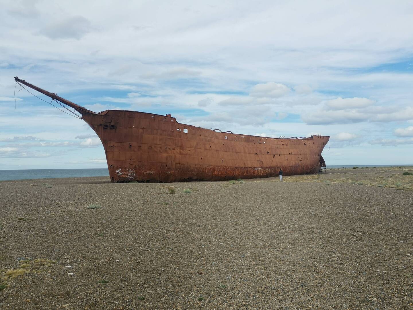 Von El Chaltén Richtung Rio Gallegos unterwegs und bis nach Punta Loloya gefahren. Hier steht ein Schiffswrack und ein Denkmal für die Gefallenen Soldaten und Piloten des Falklandkrieges . Und eineLeggi altro