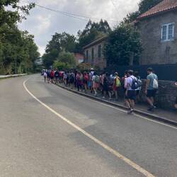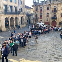 Und dann sah ich sie: Menschenmassen. Beim Annähern erkannte ich, dass es Jugendliche waren, bestimmt 100 oder mehr, die wohl einen Ausflug von Padrón nach Santiago unternahmen. Schöne Idee! Das Überholen gestaltete sich allerdings schwierig auf den schmalen Straßen und beim Vorbeilaufen fühlte ich mich dann wie in Peking, als Attraktion der Kiddies. ‚Hello‘, ‚Hello‘, ,Hello‘ von allen Seiten. Geschafft! Puh! Heute ging es wieder viel bergauf und bergab, letzteres mögen meine Knie nicht mehr so. Der Duft des Weges war eine Mischung aus Kohl und Zimt, ich glaube das sind die Feigen, die so süßlich riechen. Hier gefällt mir letzteres definitiv besser, nichtsdestotrotz macht der Kohlduft wieder Lust auf einen leckeren Eintopf. Als ich in O Milladoiro ankam aß ich erstmal was und brauchte eine Siesta, weil ich so unfassbar müde war. Was man Körper braucht, soll er auch bekommen - schließlich hat er mich in den letzten 10 Tagen über 250km weit getragen, einfach unfassbar!Read more