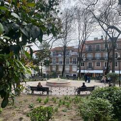 Damit setzten wir uns in den Park nebenan. Dort waren wir allerdings nicht allein: ungefähr 100 Tauben hatten offensichtlich gelernt, dass Menschen mit Croissants potenzielle Essensquellen sind. Entsprechend zutraulich waren sie und beobachteten uns sehr aufmerksam.