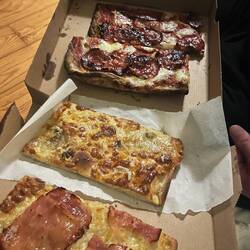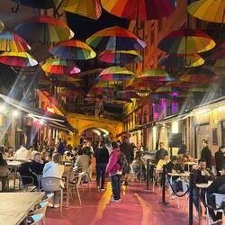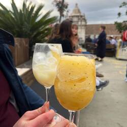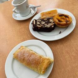 Naja…Okay lecker. Sagen wir so: Die Pommes waren besser. Danach spazierten wir weiter zum berühmten Elevador de Santa Justa. Der historische Aufzug aus dem frühen 20. Jahrhundert verbindet die Unterstadt mit einem höher gelegenen Viertel und sieht mit seiner filigranen Eisenkonstruktion ein bisschen aus wie ein kleiner Eiffelturm. Leider war er gerade gesperrt, sodass wir nur von unten schauen konnten. Zur Aufmunterung gab es deshalb – natürlich – noch ein Pastel de Nata, diesmal von Castro. Unser nächstes Ziel war eine schöne Dachterrasse, von der man noch einmal über die Stadt schauen konnte. Der Blick war großartig, aber der Wind inzwischen ziemlich kühl und der DJ eine Katastrophe. Nach einem Drink beschlossen wir daher, kurz in der Unterkunft vorbeizuschauen, um uns etwas aufzuwärmen. Am Abend gingen wir noch einmal durch unsere Nachbarschaft rund um die Praça das Flores. Dieser kleine Platz ist jeden Abend voller Leben: Menschen sitzen draußen, trinken Wein, unterhalten sich – eine richtig schöne Atmosphäre. Zum Abschluss unserer Reise gingen wir noch Pizza essen und ließen den Abend anschließend mit ein paar Cocktails ausklingen. Ein ziemlich perfekter letzter Abend.Read more