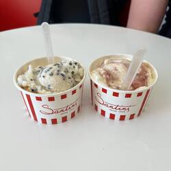 Das Dessert dagegen war deutlich besser: Eis von Nivà und Pastéis de Nata – eine Kombination, die inzwischen fast schon zu unserem Lissabon-Ritual werden könnte.