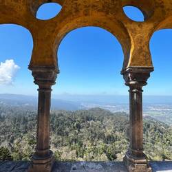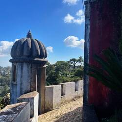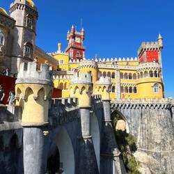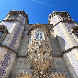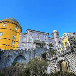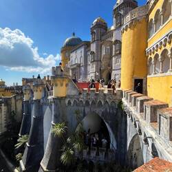 Der Palast thront hoch oben auf einem Hügel und ist schon von weitem zu erkennen – vor allem wegen seiner leuchtend bunten Farben in Gelb, Rot und Blau. Der Bau stammt aus dem 19. Jahrhundert und wurde von König Ferdinand II. als romantisches Märchenschloss errichtet. Architektonisch ist er ein ziemlich verrückter Mix aus unterschiedlichen Einflüssen, was ihn zu einem ungewöhnlichsten Palast macht.
