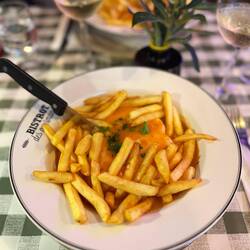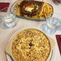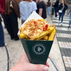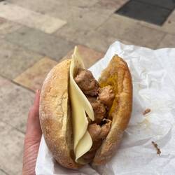 Zum Abschluss wollten wir noch etwas Herzhaftes essen und entschieden uns für Francesinha. Dieses Gericht stammt eigentlich aus Porto und ist ein ziemlich legendäres portugiesisches Sandwich: mehrere Schichten Fleisch, Käse darüber geschmolzen und alles übergossen mit einer würzigen Soße. Dazu gibt es meistens Pommes. Klingt etwas wild – war aber tatsächlich richtig lecker.