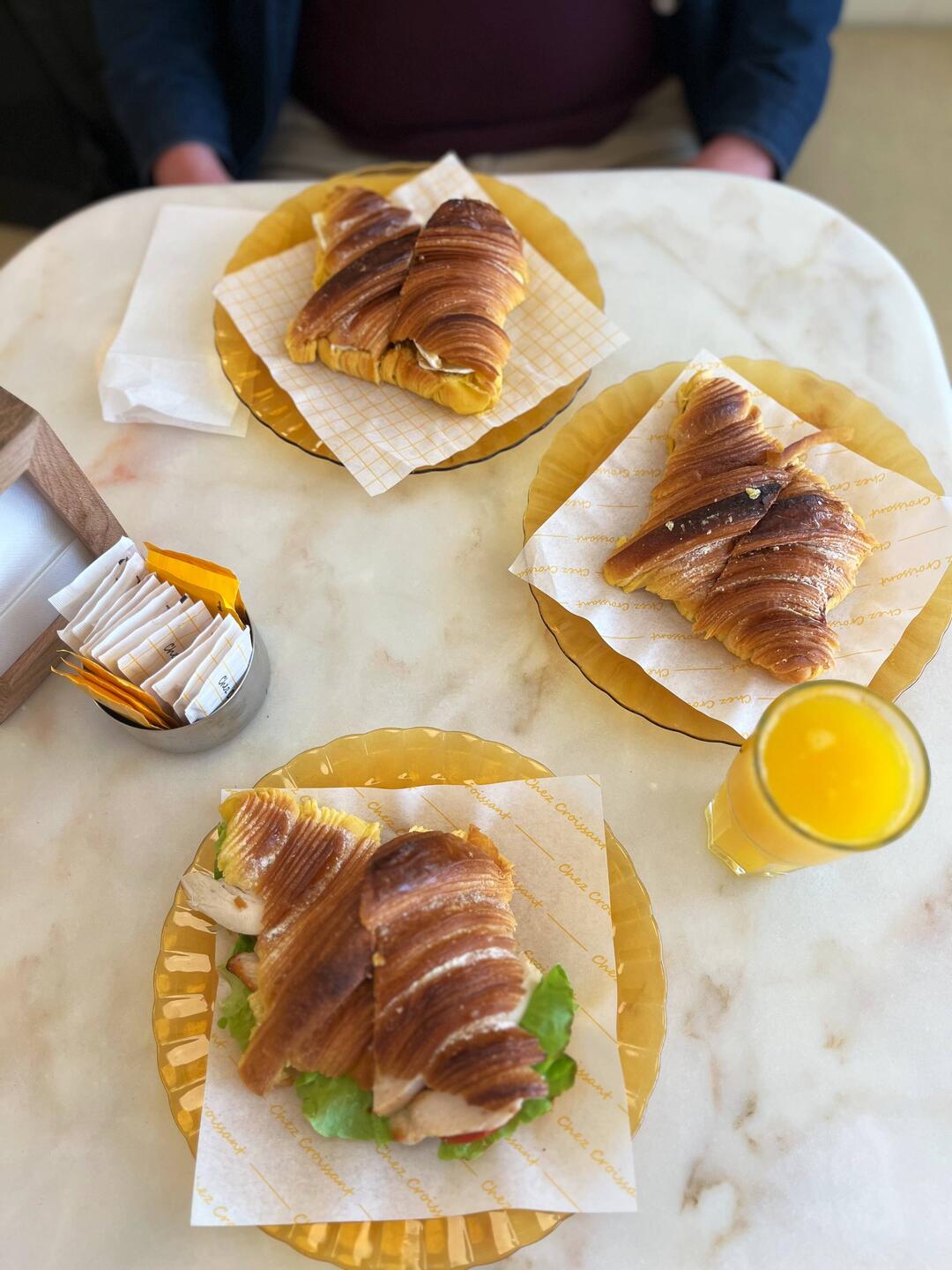 Unser Favorit: Croissant mit Schinken, Käse, Senf und sauren Gurken.