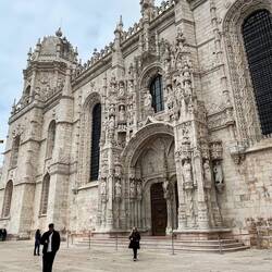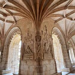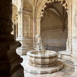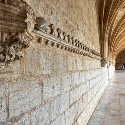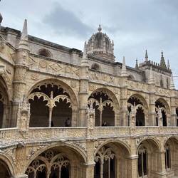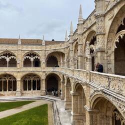 Nach dem Frühstück machten wir noch einen letzten kleinen Ausflug zum Mosteiro dos Jerónimos – dem berühmten Hieronymitenkloster im Stadtteil Belém. Das Kloster wurde im 16. Jahrhundert zur Zeit der portugiesischen Entdeckungsreisen gebaut und gilt als eines der bedeutendsten Bauwerke im sogenannten manuelinischen Stil, einer besonders prunkvollen portugiesischen Variante der Spätgotik. Viele Ornamente erinnern an die Seefahrt – Seile, Muscheln und maritime Motive tauchen überall in der Architektur auf. Die Anlage ist ohne Frage beeindruckend: der große Innenhof, die Steinbögen und die langen, eleganten Kreuzgänge sind wirklich wunderschön.