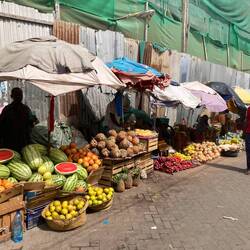 Hallo Kenia, hallo Mombasa! Ich entschied mich heute für einen Landgang auf eigene Faust, Oma blieb auf dem Schiff. Ein Shuttle-Bus ließ mich direkt am Wahrzeichen Mombasas raus, den riesigen Stoßzähnen. Und da war sie auch schon: eine laute, volle Stadt, die auf dem ersten Blick alles andere als einladend aussah. Beim Überqueren der ampellosen Straßen musste ich an Asien denken: Einfach laufen & am besten das Gleiche wie die Einheimischen tun. Erste Herausforderungen gemeistert. Ich lief in Richtung ‚Old town‘. Alle zwei Meter hörte ich aus jeder Richtung ‚Mambo‘, jeder rief mir Mambo zu. In Dubai hieß es immer ‚Shakira, Shakira‘ und das fand ich zwar sehr nett mich mit Shakira zu verwechseln, aber jede weiße Frau hieß natürlich Shakira. Ich hoffe, Mambo ist was ähnlich Schmeichelndes. Ich lächelte auf jedes ‚Mambo‘, denn irgendwas nettes wird es schon sein. Oder? Ohne Google Maps war alles ein bisschen schwierig, aber ich fand die Altstadt. Die mombasische Altstadt hat aber so gar nichts mit einer Altstadt im europäischen Sinne zu tun. Wie der erste Eindruck, war auch der zweite nicht gerade einladend. Die Armut war nicht zu übersehen. Ich erreichte nach 100 weiteren Mambos den Gewürzmarkt, wo mich natürlich direkt jemand ansprach. Weit und breit war ich die einzige Weiße & entsprechend das Ziel so ziemlich aller. Wo sind denn die ganzen Kreuzfahrt-Buddies, wenn man sie mal braucht? Josef war aber, wir wirklich alle, sehr nett und führte mich durch sein Gewürzangebot. Ich durfte vieles probieren und kaufte natürlich auch eine kleine Auswahl. Ich fragte ihn direkt, was denn Mambo heißen würde. Mit der Antwort ‚Wie gehts’ war ich sehr erleichtert und erkundigte mich direkt nach einer geeigneten Antwort: ‚Mambo poa/boa’ - gut geht es mir. Josef wollte ein Foto mit mir machen und schleppte mich anschließend in ein Stoffgeschäft. Ich wäre ganz bestimmt nicht mehr rausgekommen, wenn ich nichts gekauft hätte. Es gab also ein Tuch & schnell weg. Ich suggerierte Josef, dass ich nicht bereit bin mehr zu kaufen. Puh, ich ging weiter durch die Gassen. Mambo, Mambo poa. Viel Obst, Gemüse, Fisch..Müll. Mülltüten wurden gesammelt und auf ‚Nützliches‘ durchsucht. Alte Latschen repariert. Der Fisch ausgenommen. Obst geschnitten.
