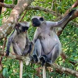 Wir liefen weiter in den Dschungel. Es war unglaublich heiß und die Luftfeuchtigkeit unerträglich. Der Schweiß lief und lief und hörte auch nicht auf zu laufen. Wir waren klitschnass. Alles andere war grün, hier die Vanille, dort Bananen und da hinten Lemuren. Sie hüpfen von Palme zu Palme und freuten sich über die Bananen der Touristen. Anscheinend freute sich eins so sehr, dass es mich ankackte. Hoffentlich bringt das auch Glück! Dann trafen wir auch wunderschön-bunte Chamäleons. Man erklärte uns, dass sich die bunte Färbung auf schwarz ändert, wenn die Chamäleons traurig sind. Puh, zum Glück waren alle happy! Riesige Schildkröten waren am Wegesrand zu sehen und noch mehr Lemuren. Auch Boas gibt es hier und da. Oma war so mutig und ließ sich eine Baum-Boa um die Schultern legen. Verrückt! Entwarnung: Sie hat es unversehrt überstanden. Also abgesehen davon, dass das Wetter sehr herausfordernd gewesen ist, war es eine unvergessliche Erfahrung all diese Tiere so nah zu sehen.