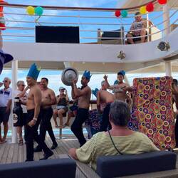Zurück auf dem Schiff hieß es dann: Helau. Ich musste anscheinend erst auf dem indischen Ozean herumschippern um mal wieder Karneval zu feiern. Es gab alles, was man sich vorstellen konnte. Krapfen, einen sehr kreativen Rosenmontagszug, eine Rosenmontagssitzung und eine entsprechende Party. Viele Gäste hatten tatsächlich Kostüme dabei. Oma und ich sind jetzt nicht so die großen Karnevals-Fanatiker, haben aber dennoch bis auf die Party alles mitgemacht. Artania, Alaf!Leia mais