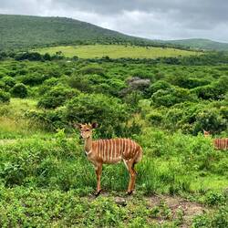 Safari, die zweite! Oma gönnte sich einen Erholungstag auf dem Schiff und ich setzte mich wieder in den Bus für die zweite Safari. Die Busfahrt dauerte 4 Stunden bis wir am Hluhluwe (Ausgesprochen:Schluschluwe) Park angekommen sind. Die Hinfahrt war super anstrengend, nicht aufgrund der Länge, sondern aufgrund der lokalen Reiseleitung, die 3 Stunden am Stück uninteressante Details von sich gab. Ne. Also wirklich, ne. Umso größer war die Freude, als ich dann endlich wieder im offenen Geländewagen saß, die Reiseleiterin zum Glück in einem anderen. Los geht’s! Der Hluhluwe Park ist einer der ältesten und beherbergt die Big 5 und natürlich noch viele andere Tiere. der Park ist riesig und wir konnten auf der 3-stündigen Fahrt auch nur einen Teil abfahren. Aber die Fahrt hat sich definitiv gelohnt! Es war dieses Mal wirklich wie eine Pirschfahrt, denn wir mussten die Tiere suchen bzw. unser Guide. Landschaftlich war der Nationalpark malerisch. Grün. Hügelig. Unberührte Natur. Die Straßen waren wesentlich angenehmer als gestern und die Geländewagen ein wenig komfortabler. Alle der Big 5 konnte ich leider nicht finden. Ich hätte mir so sehr einen Löwen gewünscht, aber der wollte offensichtlich nicht. Aber dafür habe ich unzählige Büffel, Zebras, Affen, Nyalas, Warzenschweine und Elefanten gesehen. Sogar Elefantenbabys. So süß. Aber dementsprechend waren die Elefanten-Mamis leicht aggressiv bzw. sehr beschützerisch unterwegs, sodass ich zwischenzeitlich echt Angst bekam. Aber alles gut, allen gehts blendend. Ein gelungener Tag! Ich könnte jeden Tag eine Safari machen. Es ist einfach so schön diese Tiere in der Natur zu beobachten.