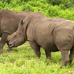 Wir erreichten endlich Thula Thula. In einem offenen Geländewagen ging die Pirschfahrt los. Yuhu! Aufregend! Es war extrem ruckelig und ab und zu dachte man, dass man mit dem Jeep umfallen würde. Entwarnung! Das war aber echt nicht ohne. ABER das hat sich absolut gelohnt. Wir haben unzählige wunderschöne Tiere aus nächster Nähe gesehen: Giraffen, Elefanten, Nyalas, Zebras, Gnus und Nashörner. Den vor dem Aussterben bedrohten Nashörnern muss man leider als Vorsichtsmaßnahme die Hörner abtrennen. Wilderer brechen nämlich in solche Parks ein um Nashörner zu töten bzw. denen das Horn abzuhacken, woraufhin sie dann elendig verbluten. In vielen Kulturen gilt das zermahlene Horn nämlich als Potenzmittel, was völliger Quatsch ist, denn das Horn besteht aus Keratin, so wie unsere Fingernägel. Die könnten also genauso gut alle mal an ihren Fingernägeln knabbern, wenn es im Bett nicht mehr läuft. Naja, um die Nashörner vor dem qualvollen Tod zu beschützen, kürzt man ihnen das Horn, damit sie für Wilderer nicht mehr attraktiv sind. Echt erschütternd wozu Menschen in der Lage sind. Aber bei der hier herrschenden Armut ist das natürlich gutes & schnelles Geld, wenn man bedenkt, dass ein Horn 3000$ bringt und das Durchschnittseinkommen bei 150$ liegt.