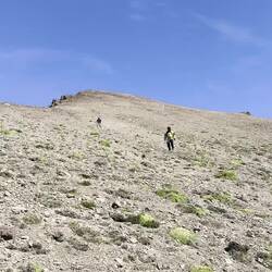 Um abzusteigen, mussten wir wieder auf die windige Seite des Berges wechseln. Es war ein irres Gefühl gegen den Wind bei einer Neigung von anfangs 45% nach unten zu „laufen“! Das hätte man NIE machen können, wenn der Gegenwind nicht dementsprechend stark gewesen wäre. Echt lässig! Danach wurde es flacher, aber Spaß hatten wir trotzdem 😜.