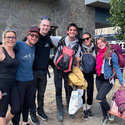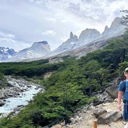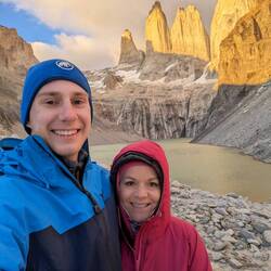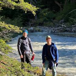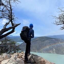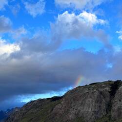 Das Wetter war nicht das beste, aber sie sahen einen Regenbogen bei den Lagunen direkt unterhalb des Gletschers des berühmten Fitz Roy.