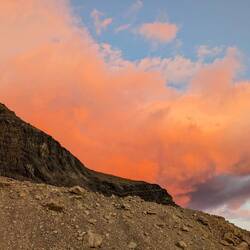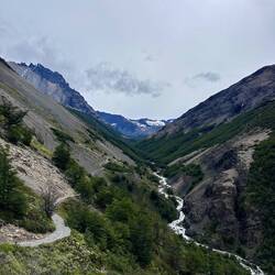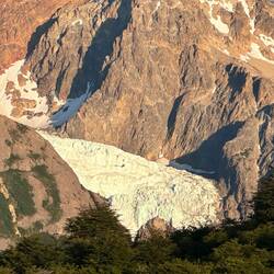 Als die Strecke flach wurde, konnte ich nicht widerstehen und musste die nächsten acht Kilometer laufen. Es war ein traumhaftes Naturschauspiel, die aufgehende Sonne am Berg vor uns zu beobachten. Langsam veränderten sich die Farben und wurden satter. In der Ferne waren Gletscher auszumachen - muss fast so sein, im Nationalpark Los Glaciares.