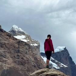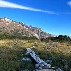 Auf den letzten Kilometer kommen 400 Höhenmeter und die wollte ich dann nicht mehr laufen. Plötzlich erreichte mich ein argentinischer Wanderer und meinte: „Ich habe dich die ganze Zeit laufen gesehen und wollte dich unbedingt einholen. Ich brauche nämlich jemanden, der ein Foto von mir vor dem Fitz Roy macht.“ Also bestritten wir den letzten Teil gemeinsam und er sagte mehrmals wie glücklich wir uns doch schätzen können, einen so seltenen Blick auf den freien Berg zu erhaschen.