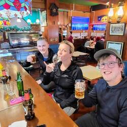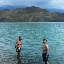 Den Rest-Nachmittag verbrachten wir an Papas Seite. Als aber der Hunger zu groß wurde, suchten wir das Gasthaus nebenan auf und trafen zufällig unseren neuen Freund aus Belarus, Anatoli. Wie unterhielten uns wirklich ausgezeichnet und verabredeten uns gleich wieder für morgen zum Abendessen.