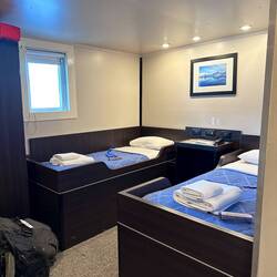 Zum Mittagessen zauberte der Koch Quinoa auf Joghurt mit frischem Gemüse zur Vorspeise, Linseneintopf mit Rindfleisch zur Hauptspeise und eine Karamelcreme zur Nachspeise. Den Tabletten schuldig, legten wir uns im Anschluss wieder schlafen. Zwischen dem Essen und Schlafen konnten wir aber Mitreisende beobachten, denen es nicht so blendend ging.