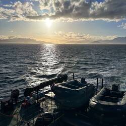 Da wir morgen die erste Whale-Watching Tour haben und darüber hinaus den weißen Kontinent nur via Kleinboot erreichen können, wurden wir in den Umgang mit den „Zodiacs“ eingewiesen. Das sind die schwarzen Gummiboote, mit denen wir an Land gefahren werden.