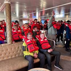 Im Anschluss hatten wir eine Einschulung über das Verhalten in der Antarktis. Dazu bekamen wir im Vorfeld schon einige Broschüren und Videos zugeschickt, aber da diese Thematik sehr ernst zu nehmen ist, sprachen wir noch einmal eineinhalb Stunden darüber.