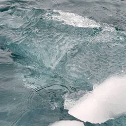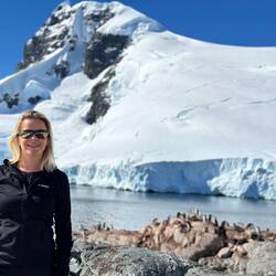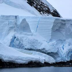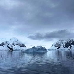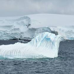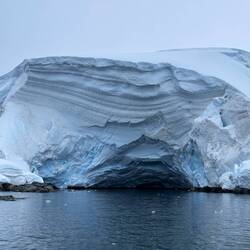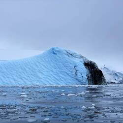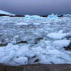 Für den Fahrer Maxi war es eine kleine Herausforderung, zwischen den ganzen Eisbrocken durchzunavigieren, ohne den Schraubenantrieb des Zodiacs zu beschädigen. Unser Guide Marlena zeigte uns das sogenannte Millenary Ice, welches Tausende und Abertausende Jahre alt ist und so zusammengepresst wurde, dass keine Luftblasen mehr eingeschlossen sind.