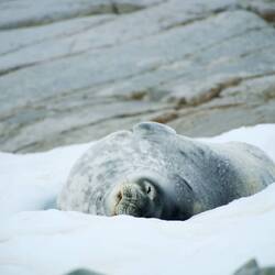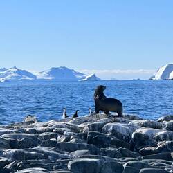Nachdem wir Fuß auf den weißen Kontinent gesetzt hatten, wurden wir vom Team herzlich begrüßt und danach gleich noch mal darauf aufmerksam gemacht, dass wir nur in den für uns vorgesehenen Bereichen gehen dürfen und keine neuen Fußstapfen in den Schnee setzen dürfen. Unweit von der Anlegestelle des Bootes lag gleich eine Weddell-Robbe 🦭. Soooo süß 🥰.