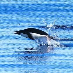 Pinguine sahen wir ebenfalls wie kleine Torpedos aus dem Wasser springen und gleich wieder eintauchen, um erneut rauszuspringen und wieder zu verschwinden. Wenn das fünf sechs Pinguine gleichzeitig und ineinander übergreifend machen, sieht es wie eine einstudierte Meisterleistung.