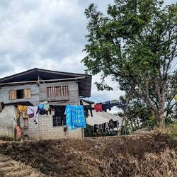 Nach einem herzlichen Empfang dürfen wir zu Beginn gleich Schokolade kosten und stellen überrascht fest, dass auch aus Macambo Schokolade hergestellt wird. Anschließend werden wir über das Grundstück geführt, wo wir die ganze Pflanzenvielfalt bewundern können und lernen dann, wie die Kakaobohnen fermentiert, getrocknet, geröstet und weiterverarbeitet werden. Alles passiert hier vor Ort. Einziger Wermutstropfen für Julian: obwohl die Produktion gerade nicht läuft, können wir die Maschinen leider nur von oben anschauen. Zum Abschluss gibt's noch eine Tasse heiße Schokolade. Ganz lecker, aber vor allem der Néctar de Cacao hat es uns angetan. Noch nie davon gehört. Das ist der aus dem Fruchtfleisch gewonnene Saft, pur und natürlich fermentiert. Erinnert ein wenig an Neuen Wein. Ein Stück Zwiebelkuchen dazu wäre fein. Wir bleiben über Nacht. Da es zuvor stark regnete, gibt's gerade weder Strom noch Wasser - nichts außergewöhnliches hier.