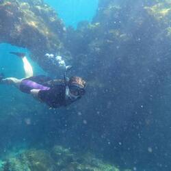 Unseren letzten vollen Tag auf Galápagos verbringen wir an der Bahía Tijeretas. Hier, so haben wir gelesen, ist es kaum möglich, ohne umringt von Seelöwen zu schwimmen. Und es stimmt, überall tollen sie herum, flitzen durch's Wasser, machen seltsame Verrenkungen oder spielen sowohl mit uns als auch mit ihren Artgenossen. Einmal nicht aufgepasst und ein Seelöwe stibitzt den Schnorchel eines anderen Touristen. Gut, dass ein Guide da ist. Es scheint, als hätte er Erfahrung damit und bringt den Schnorchel in kurzer Zeit zurück. Ein schöner letzter Tag.