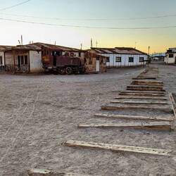 Etwa 40km weiter im Landesinneren liegen die beiden ehemaligen Salpeterwerke Humberstone und Santa Laura. Beide mussten Anfang der 1960er Jahre ihre Tore schließen weil der Absatz von Salpeter immerBaca lagi