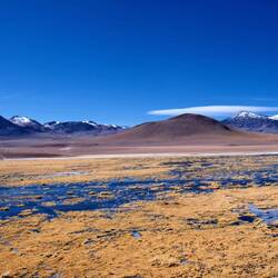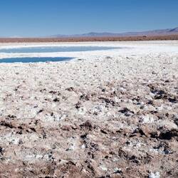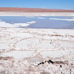 Wir durchqueren die Salar de Atacama, die mit 3.051km² größte Salzpfanne Chiles. Sie ist nicht nur ein beliebtes Touristenziel, hier befinden sich auch beträchtliche Lithium-Reserven.