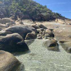 Das kann nicht die Wirklichkeit sein oder? So einen perfekten Strand gibt es doch nur in der Rafaello Werbung. Im klaren flachen Wasser des Whitehaven Beach sehe ich die Rochen mit ihren langenMeer informatie