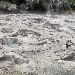 Ich gehe in einem öffentlichen Park spazieren und sehe wundersame Dinge: Blasen schlagende Schlammlöcher, dampfendesLes mer