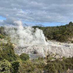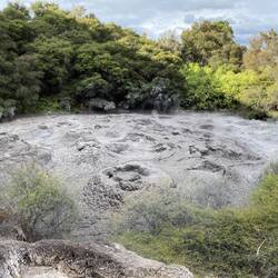 Die ganze Gegend um Rotorua ist ein einziger dampfender, stinkender Hexenkessel.