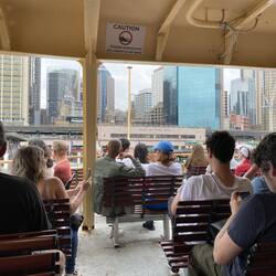 Mit der Fähre fahre ich in 30 Minuten zum Manly Beach. Auf der Fahrt bekomme ich einen schönen Ausblick auf die Oper, die Harbour Bridge, die kleinen Garteninseln und die zerklüftete FelsenküsteLæs mere