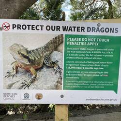 Bei meinem Spaziergang am Manly Beach komme ich an einem Schild vorbei, welches davor warnt die Wasserdrachen zu berühren. Es drohen 6 Monate Haft! Und 2 Schritte weiter entdecke ich dannLæs mere