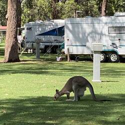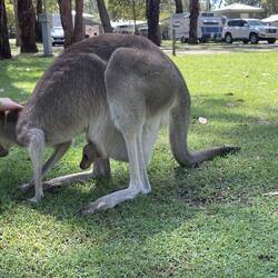 Dass ich in Australien Kängurus sehe, hatte ich gehofft. Aber wer hätte gedacht, dass ich sie auch streicheln werde!!! Auf diesem gepflegten Campingplatz springen sie jedenfalls überall herum undLæs mere