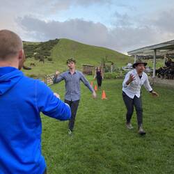 Auf der Suche nach einer Bleibe für die Nacht, sind wir zufällig auf „The Farm“ gelandet. Ein echter Kiwi-Bauernhof mit 200 Milchkühen, 60 Pferden, Ziegen, Gänsen, Hühnern, einem Schwein undLeggi altro
