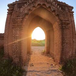Da wir vorher gelesen hatten, dass die Pagode auch vor allem bei Sonnenuntergang besonders schön sein muss, setzten wir uns nach einiger Zeit mit auf den Boden und beobachteten die Menschen, die Männer, die anfingen, tausende von Kerzen um den inneren Bereich zu entzünden und das wechselnde Lichtspiel auf der Pagode, dass sich minűtlich mit untergender Sonne veränderte. Während ich im Schneidersitz mein Glück kaum fassen konnte, erzählte mir Saufi nebenbei, dass sie ihre Füße doch sehr schön findet und wir lachten darüber bis zwei junge Burmesinnen zu uns kamen und versuchten, uns zu erklären, dass wir offenbar etwas falsch taten... Da die Verständigung in Englisch in Myanmar nicht selbstverständlich ist, dachten wir zunächst, dass wir uns als Touristen nicht neben die Betenden sitzen dürfen, da sie uns mit viel Gestik erklärten, dass wir uns im inneren Ring, dem Bereich für die Betenden, befinden aber dies war offensichtlich nicht das Schlimme! Nach einigen Minuten verstanden wir, dass es an Saufis (schönen) Füßen lag, die sie in ihrer Sitzposition mit den Fußsohlen voraus den Buddhastatuen zeigte (scheinbar sollten auch diese sehen, wie schön sie sind) aber dies war - wie wir uns leider erst nachher belaßen - das mit "Schlimmste", was man im Buddhismus tun kann...