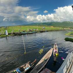 Der Inle Lake ist mit 120 qm der zweitgrößte See Myanmars und liegt in Mitten der Shan Berge. Der See ist bekannt für seine Eimbeinruderer, schwimmenden Dörfer und Gärten, wobei das Leben der Menschen vollkommen auf den See ausgerichtet ist.
