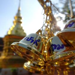 Nach diesem Tempel ging ich weiter durch das White Elephant Gate, das geschichtlich erste errichtete Tor im Norddurchgang der Stadtmauer zum Wat Lok Molee. Der Tempel wurde im 14. Jahrhundert erbaut und bietet seitdem einigen Mönchen ein zu Hause, die man auf der Anlage auch teilweise antrifft. Der Chedi des Tempels ist im Gegensatz zu den vielen vergoldeten Chedis der anderen Tempel sehr einfach gehalten, was aber für mich wieder einen besondere Charme versprühte. Davor konnte man goldfarbene Blätter an einen Glücksbaum hängen oder beim Rundgang um die Chedi die zahlreichen Kerzenschalen und kleinen Figuren anschauen. Da ich in Chiang Mai das berühmte Yee Peng Laternenfestival nur knapp verpasst hatte, sah man aber in der ganzen Stadt und vor allem in den Tempelanlagen noch die vielen bunten Laternen hängen, die nicht nur schön anzusehen waren sondern der Stadt nochmal eine besondere Stimmung beschafften.