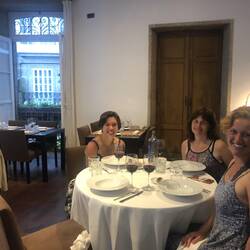 Arrived here by taxi around 6pm. What a treat. Showered. Glass of wine in the sitting room. Dinner at 8:00pm. Heard the 94 bed hostel in town had bed bugs. Glad we made the trip to the country. Salad,Les mer