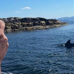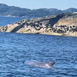 Als wir noch ein Stück hinaus aufs Meer gefahren sind haben wir einen Wal ganz nahe beim Boot gesehen! Der absolute Höhepunkt!