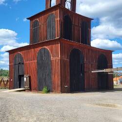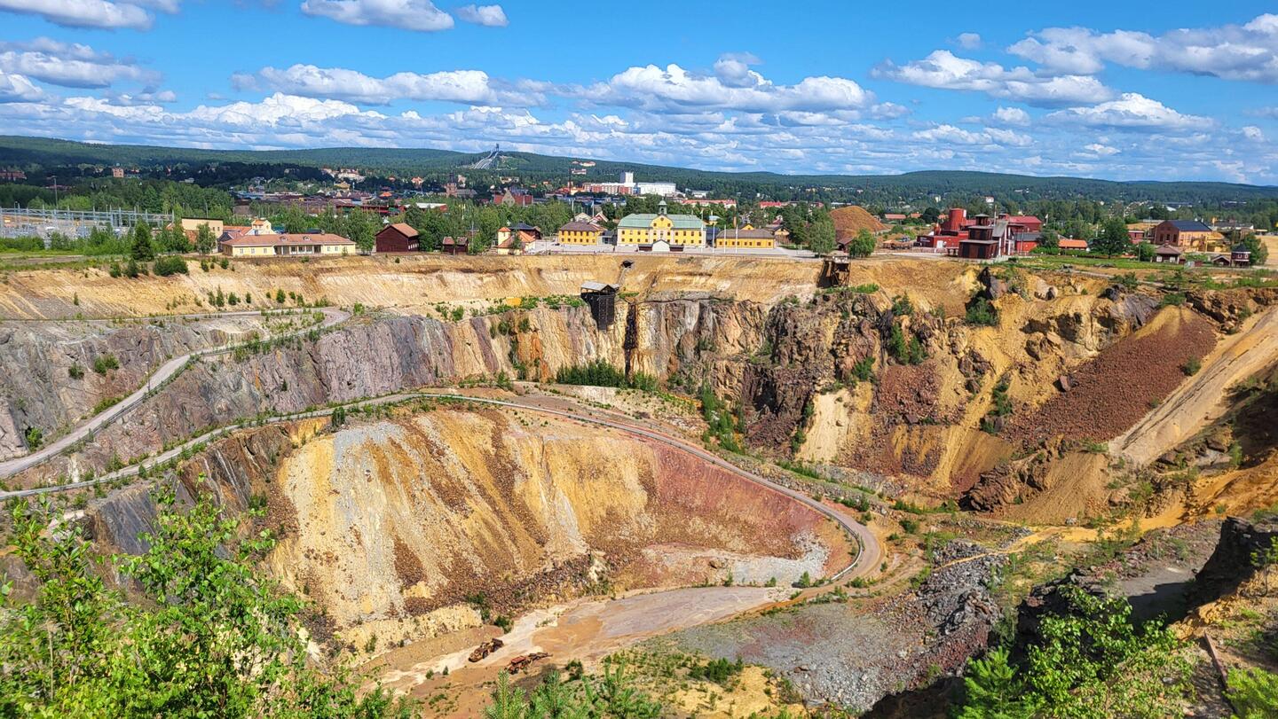 Im Hintergrund sieht man die Sprungschanze von Falun.