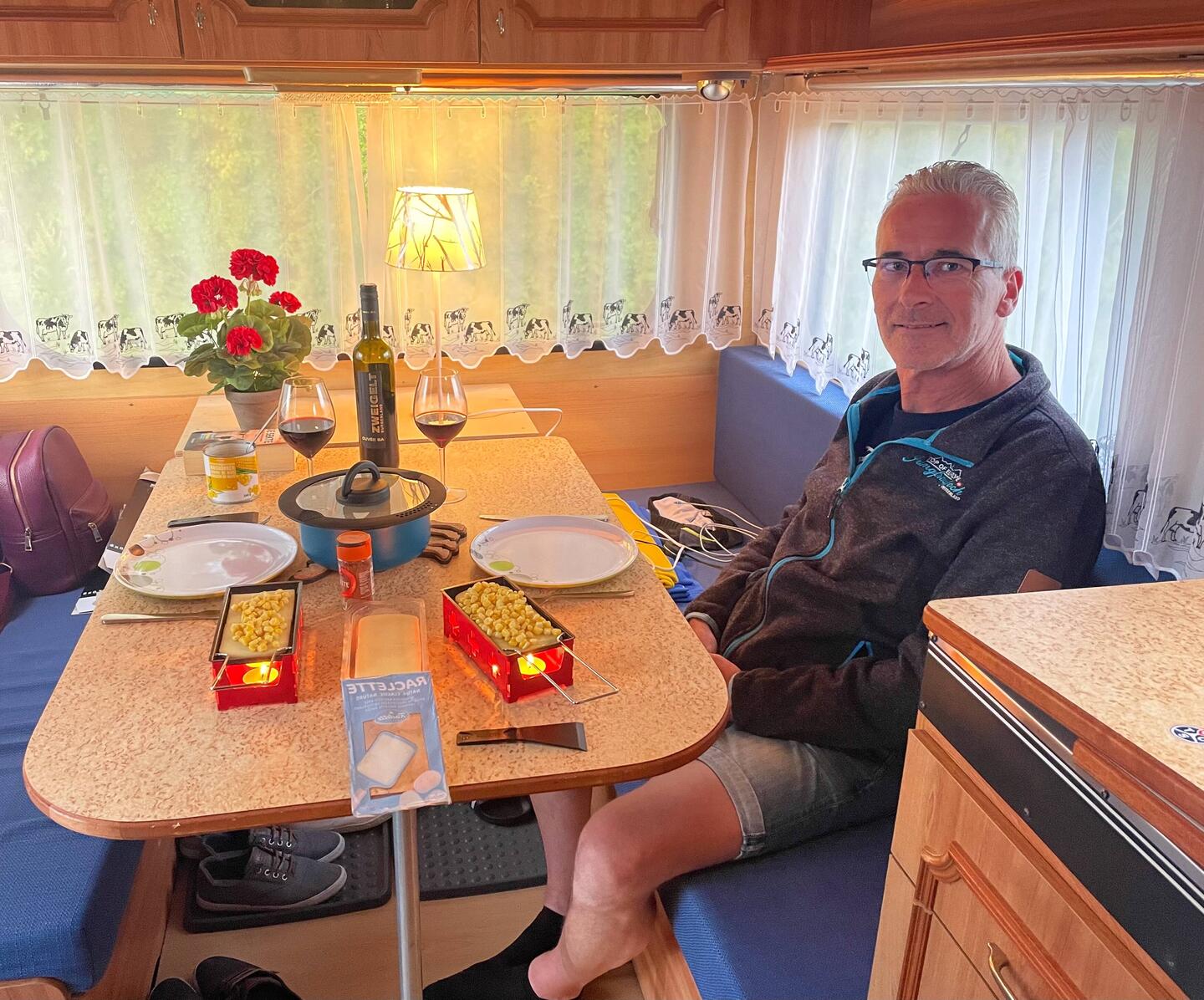 Das definitiv letzte Raclette in unserem alten Wohnwagen.