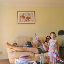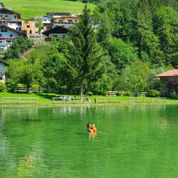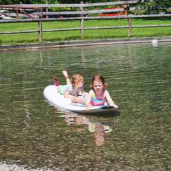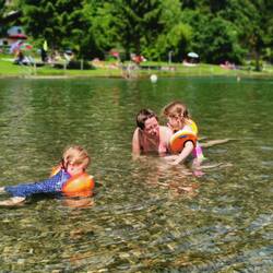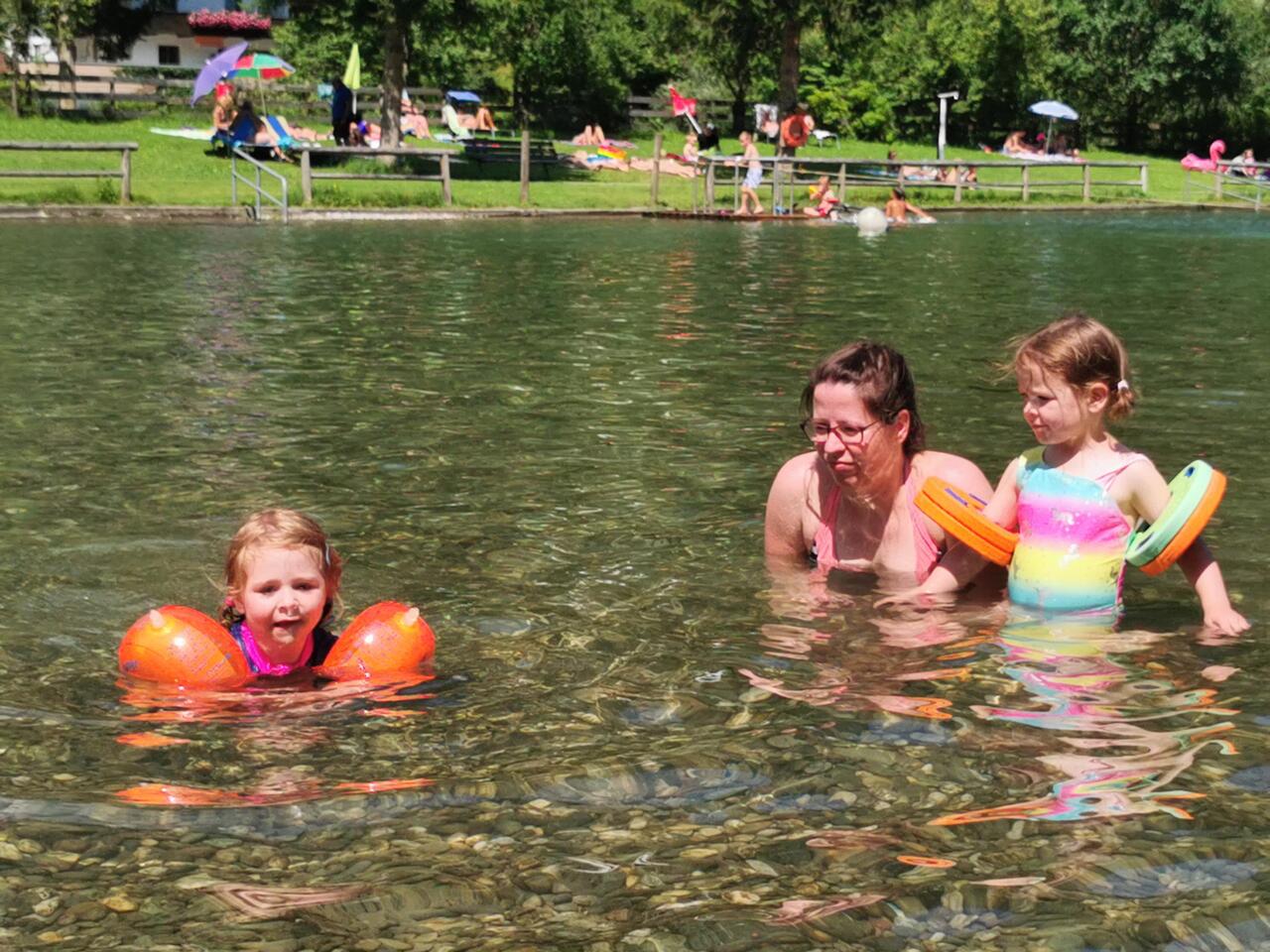 Ausgepackt, Wohnung erkundet und da es noch früh ist.... Ab in die Badesachen und zum nahe gelegenen See... Mit Mittagsschlaf....