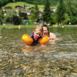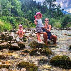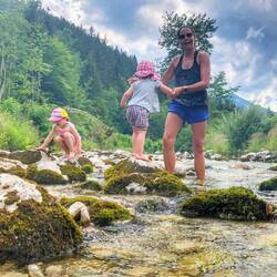 Im Flussbach.... Ja mit Tante Katja wird auch mal durch den Bach gegangen..... Den zwei Zwergen gefällt es scheinbar..... Auch wenn das bergwasser schei...e kalt ist🥶🥶🥶😆