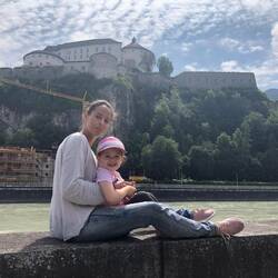 Stadt Erkundung...... Blich auf die Burg über den Inn...... Erstmal nen päuschen... Da Isi noch schläft.....
