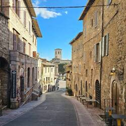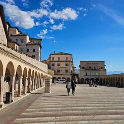 Nächstenliebe, Demut und Armut - dafür steht der hl. Franziskus (1182-1226), der hier geboren wurde. In der Basilica Papale di San Francesco wird er verehrt. Seine ganz aus dem zart ockerfarbenen Stein der Umgebung gebaute Stadt bettet sich auf einen grünen Ausläufer des Monte Subasio. Das mittelalterliche Stadtbild - dazu zählen die Stadtmauer sowie die Festungsruine Rocca Maggiore - gehören seit dem Jahr 2000 zum Weltkulturerbe der UNESCO. Die Kirche Santa Chiara aus dem 13. Jh. birgt das Grabmal der hl. Klara.Leggi altro
