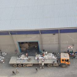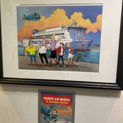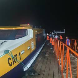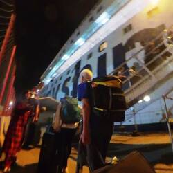 Our first glance of the Global Mercyship was from above as we drove down the hill in the minibus, by far the biggest ship in this small harbour.