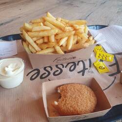 A bit of a wet ride today so had coffee break in a bus shelter. Sunday closing meant we didn't have lunch till we got to La Roche. Very touristy town. Chips and croquettes were very welcoming though.Read more